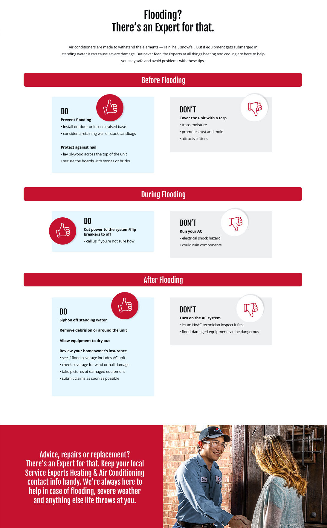 If heavy showers or flooding caused your air conditioner to sit in standing water, there are a handful of things we recommend doing to avoid more damage or dangerous conditions:
